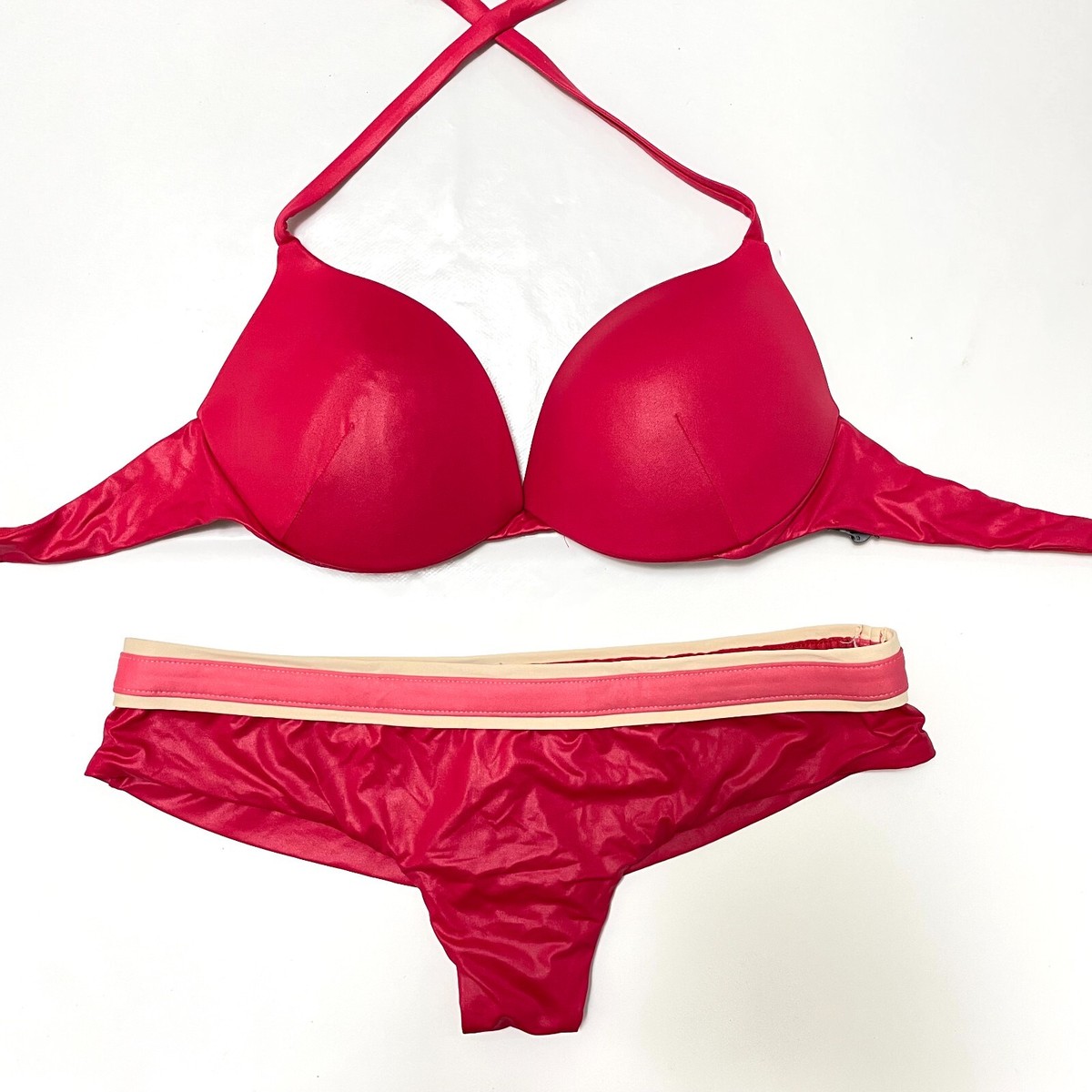This second-hand CALZEDONIA Cobey bikini offers a flattering push-up design for confident beach days. Made from durable materials, it ensures comfort and support. Perfect for swimming or sunbathing, it pairs well with sarongs and sandals for a chic summer look.