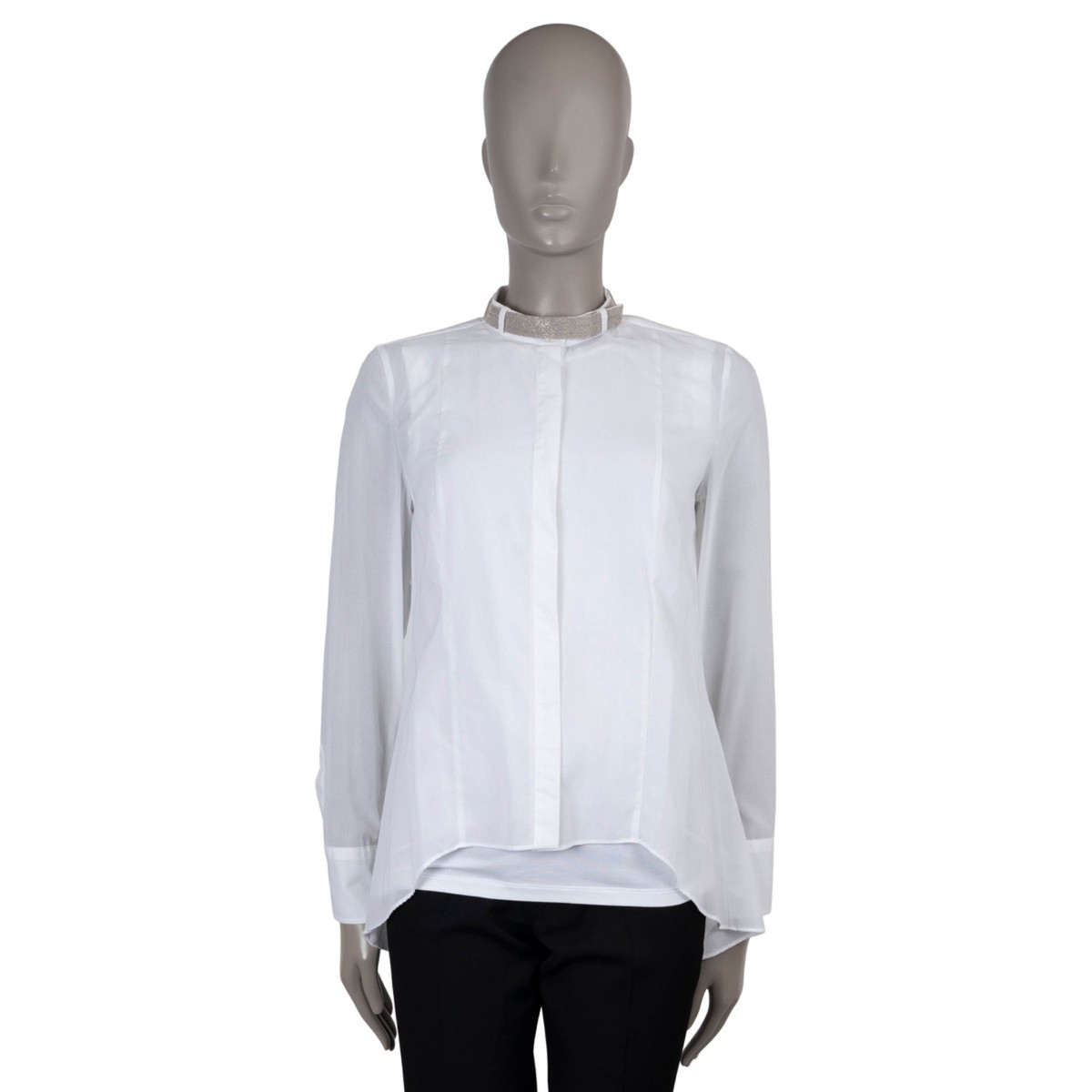 Welcome to LUX l Authentic Designer ConsignmentRämistrasse 25, 8001 Zürich, Switzerland I Tue-Fri 11-18:30 & Sat 11-16:00By bidding on our auctions you are agreeing to our Terms and Conditions below.All items come with authenticity guarantee!------------------------------------------------------------------------------------------------------------------------------------------ Product Description:100% authentic Brunello Cucinelli button-up shirt in cream gauze cotton (100%). Designed with a relaxed, effortless silhouette, it features a refined silver Monili band collar threaded through delicate belt loops, long sleeves finished with buttoned cuffs and an airy, fluid drape. A matching cream tank-top in jersey cotton (with 7% elastane) can be detached for versatile styling. Closes with front buttons for a polished, understated finish. Has been worn and is in excellent conditionMeasurementsModelMF710M8606 C001Tag SizeMSizeMShoulder Width41cm (16in)Bust From90cm (35.1in)Waist From94cm (36.7in)Length72cm (28.1in)Side Seam Length42cm (16.4in)Sleeve Length56cm (21.8in)ShopZurich - RämistrasseAll our listings include only the listed item unless otherwise specified in the description above - Price includes US tariffs - for all other countries price does not include import duties & taxes - check your countries import laws prior purchase------------------------------------------------------------------------------------------------------------------------------------------ Terms & Conditions Luxury-Shops is not affiliated with any of the name-brand items we offer for sale.Warranties and Liabilites: Luxury-Shops declines all responsibility and cannot be held liable for any damages caused by the use of a specific garment.We also cannot be held responsible for the quality of an item (we are not the manufacturer) or any damages resulting from a manufacturing defect.No warranties of any kind are given or implied.Condition of Merchandise: Luxury-Shops offers for sale luxury top-quality products. We fully disclose the condition of each item. In the description of each product, Luxury-Shops will specify the conditions if different from the standards set by the market (Required disclosure of prior use)The main characteristics of products are shown in great detail (through numerous photographs and in-depth descriptions). The products offered for sale MAY NOT correspond to the real garments in terms of image and color because of the Internet Browser or Monitor used (color calibration). Luxury-Shops disclaims all responsibility.Every used item offered by Luxury-Shops has been cleaned and restored to the best possible condition unless noted otherwise. Every used or vintage handbag has been polished and refinished. Your purchases will be sent to you ready to be used or worn.Please be aware that vintage items may be delicate and may not be as resilient as a brand-new item. Please take appropriate care when using a vintage item. Damage to items after receipt or use by customers is not the responsibility of Luxury-Shops.Luxury-Shops is a reseller of authentic designer and vintage merchandise. We are not an authorised dealer and are not affiliated with the brands we sell on our site. Store-new designer items are only available from an authorised dealer or the actual store. Once the item leaves the authorised dealer with a customer, the item is considered pre-owned. However, items can be pre-owned and in new condition - that is, never used by the owner. Below are the definitions of the descriptions we use.NEW: in new condition, that is, never used. This means the item may have been purchased by us from an authorized dealer or a store. New items may also be pre-owned, that is, purchased by one of our consignors and never used.  These items may have minor signs of handling as would any item available at an authorized dealer or boutique given…