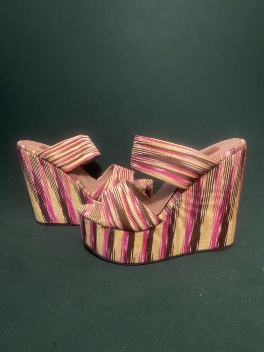 Bei Fragen stehen wir Ihnen gerne zur Verfügung. Der Preis ist verhandelbar und Rabatte sind möglich.Description (English)Stylish and comfortable heels suitable for any summer outfit. They provide good support and are imported from Italy. The interior is made of leather, with a wedge height of 13.5 cm, platform height of 4.5 cm, and insole length of 23.5 cm. The condition is excellent and they are stable.