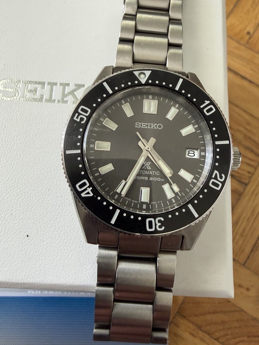 seiko spb 143. Achetée en 2020 1500 chf. Un petit coup sur la lunette vers les 6h, voir photo 5.Retard de 2mn par jour.Avec facture, boîte et papiers.