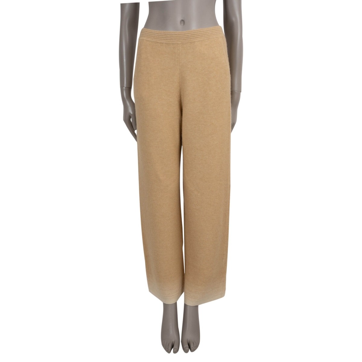 Loro Piana track pants are crafted in gradient beige to cream double knit jersey cashmere (60%) and silk (40%). Designed with wide legs and a fluid drape, they feature two slant pockets for a touch of practicality. Complete the look with the matching cardigan and top available in separate listings. Have been worn and is in excellent condition.MeasurementsModelFAM0660Tag Size40SizeSWaist64cm (25in) to 80cm (31.2in)Hips From108cm (42.1in)Length101cm (39.4in)Inseam74cm (28.9in)Rise31cm (12.1in)All our listings