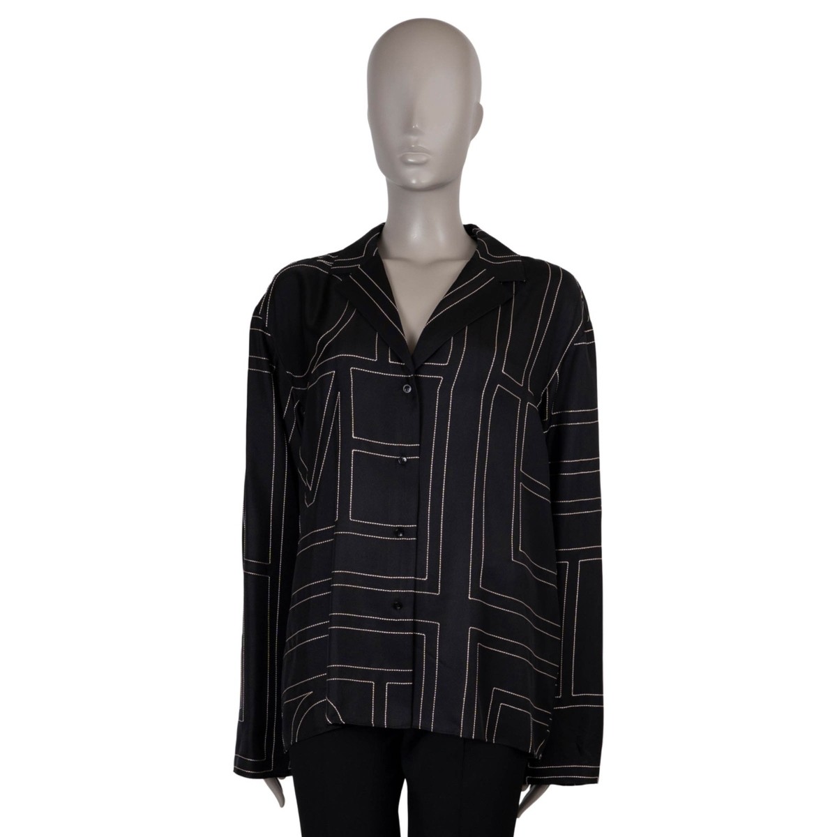 Welcome to LUX l Authentic Designer ConsignmentRämistrasse 25, 8001 Zürich, Switzerland I Tue-Fri 11-18:30 & Sat 11-16:00By bidding on our auctions you are agreeing to our Terms and Conditions below.All items come with authenticity guarantee!------------------------------------------------------------------------------------------------------------------------------------------ Product Description:100% authentic Totême pyjama shirt in black twill silk (100%) with the house’s graphic contrasting top-stitched monogram pattern. Designed in a fluid, relaxed silhouette, it drapes effortlessly with a straight cut, Cuban collar, and elegant long sleeves. Finished with refined black mother-of-pearl buttons down the front for a polished, minimalist look. Complete the set with the