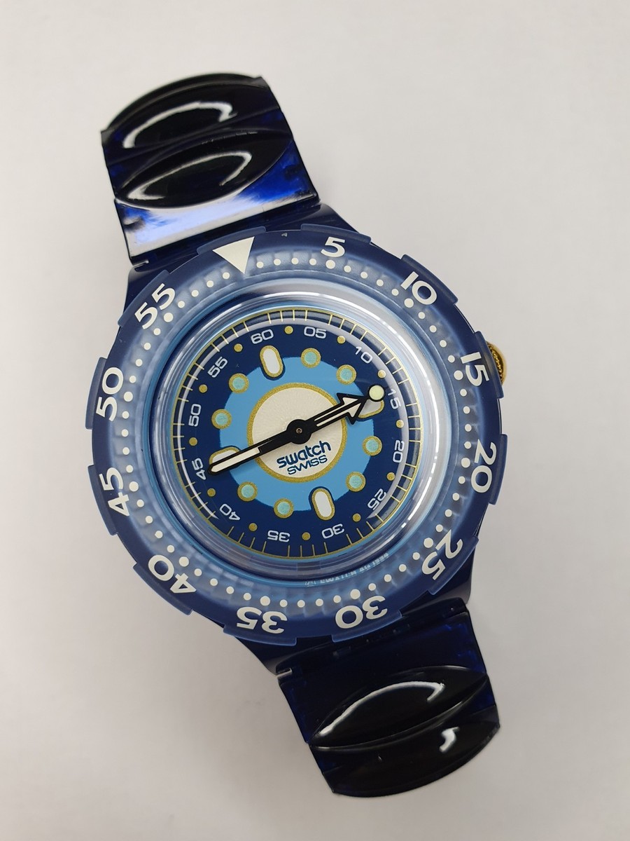 Questo orologio Swatch Scuba Abyss di seconda mano unisce stile sportivo e funzionalità affidabile. La cassa da 38mm offre una misura versatile per l'uso quotidiano, dalle uscite casual alle avventure attive.