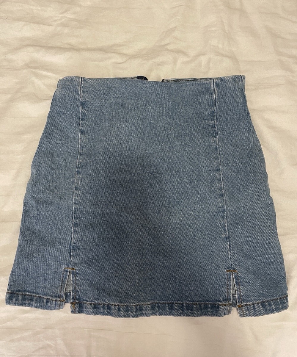 Dieser Second-Hand-Rock von Brandy Melville bietet einen zeitlosen Denim-Look mit einer bequemen Einheitsgröße, ideal für lässige Ausflüge. Hergestellt aus langlebigem Jeansstoff, ist er eine umweltfreundliche Wahl, da er bereits getragener Mode ein neues Leben schenkt. Kombiniere ihn mit einem einfachen T-Shirt und Sneakern für einen lockeren Stil oder zieh ihn mit einer Bluse für ein schickes Outfit an. Einfache Pflege – einfach kalt waschen und an der Luft trocknen, um die Qualität zu erhalten.
