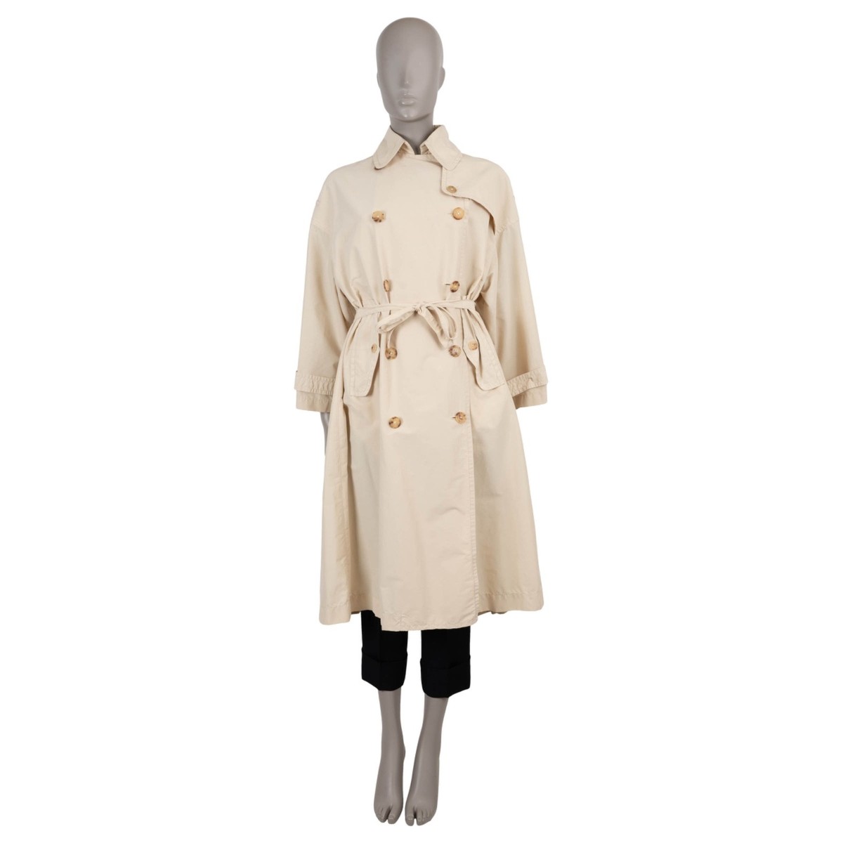Dieser authentische Trenchcoat von The Row vereint zeitlose Eleganz mit nachhaltigem Stil. Hergestellt aus Seidenfaille, bietet er eine luxuriöse Textur und langlebige Verarbeitung, ideal für Übergangswetter. Der hellbeige Farbton harmoniert mühelos mit lässigen und formellen Outfits und macht ihn zu einem vielseitigen Kleidungsstück. Als Second-Hand-Teil fördert es Kreislaufmode und reduziert Abfall. Kombinieren Sie ihn über Kleidern für einen schicken Look oder mit Jeans für ein smart-casual Ensemble.