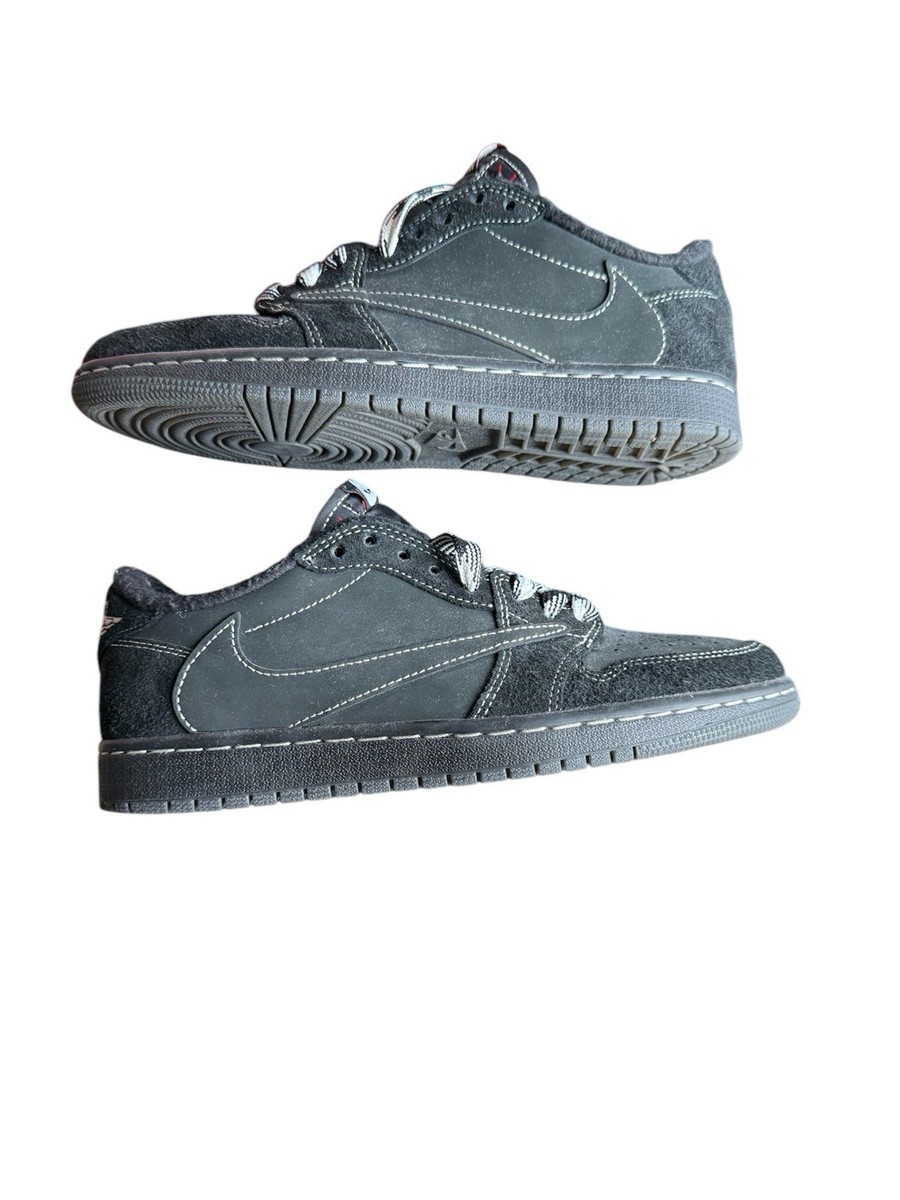 Entdecke den Jordan 1 Low OG SP, eine Kollaboration mit Travis Scott in der Farbe Black Phantom. Dieser Second-Hand-Sneaker besticht durch sein schlankes Low-Top-Design, ideal für lässige Anlässe. Hergestellt aus hochwertigen Materialien für Langlebigkeit und Komfort, mit ikonischen Branding-Details.