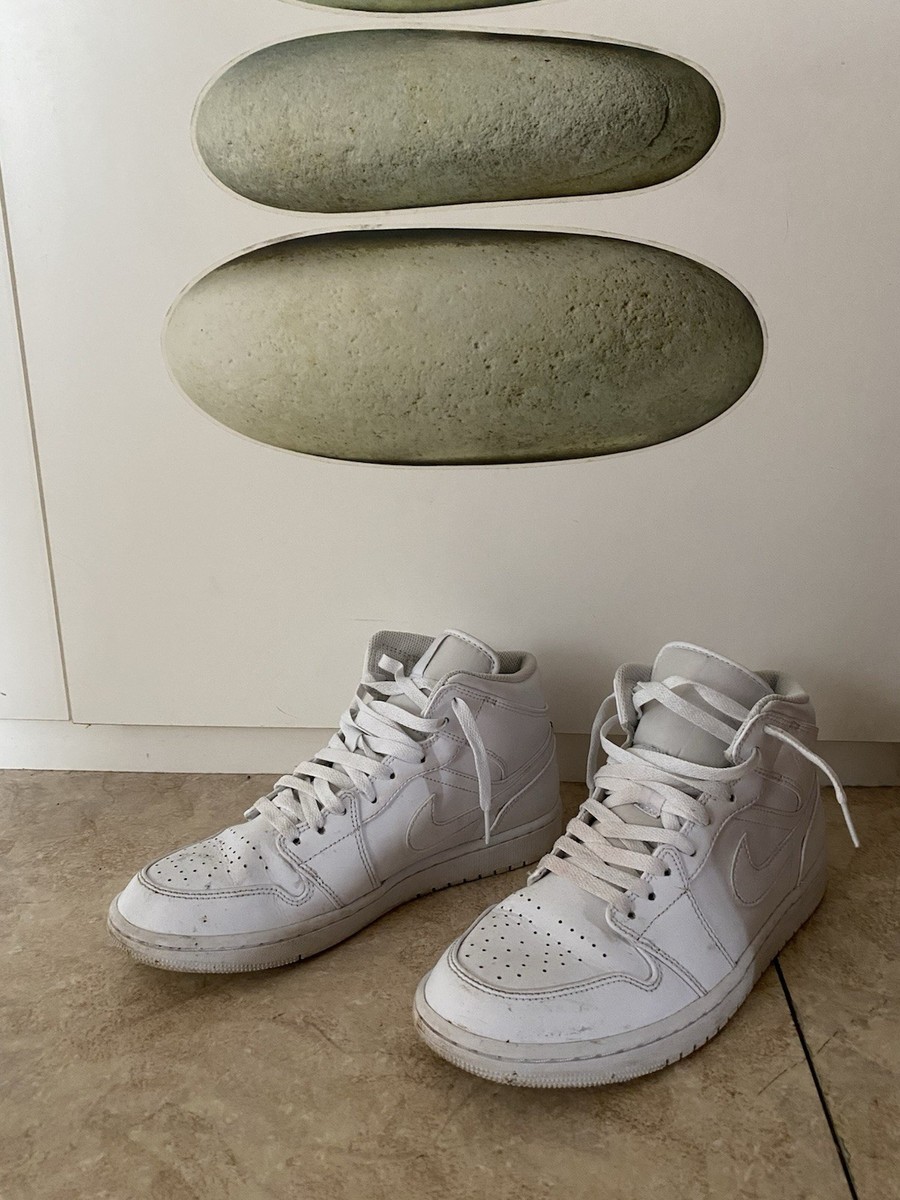 Die Jordan 1 Mid in Weiß bietet einen zeitlosen, vielseitigen Look für den täglichen Gebrauch. Hergestellt aus langlebigen Materialien, verfügt sie über das ikonische Air Jordan-Design mit Mid-Top-Schnitt für Knöchelstütze. Ideal für lockere Ausflüge oder leichten Sport, ist dieses Second-Hand-Paar eine nachhaltige Wahl, die Abfall reduziert.