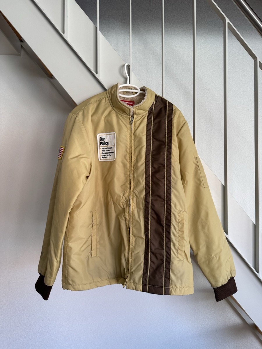 Diese Second-Hand Supreme Our Policy Jacke ist ein auffälliges Statement für urbane Streetwear-Fans. Hergestellt aus langlebigen Materialien, bietet sie einen klassischen Schnitt und ikonisches Branding, ideal für lässige Ausflüge oder zum Schichten bei kühlerem Wetter. Unterstütze nachhaltige Mode, indem du dieser gebrauchten Jacke ein neues Leben gibst.