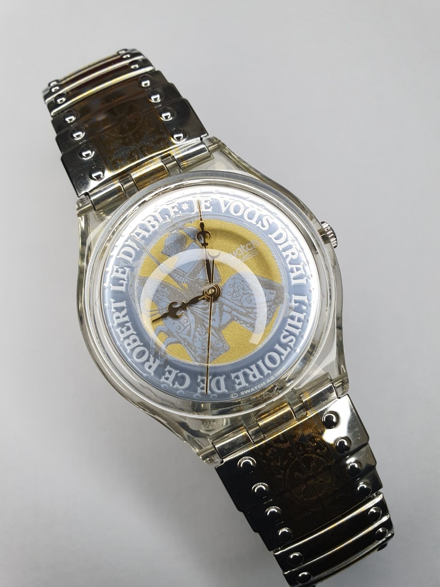 Diese gebrauchte Swatch Flex Prinz Eisenherz GK194 Uhr verbindet verspieltes Design mit zuverlässiger Funktionalität. Das 34mm Gehäuse beherbergt ein Quarzwerk, das präzise Zeitangabe gewährleistet und sie zu einem praktischen Accessoire für den täglichen Gebrauch macht.