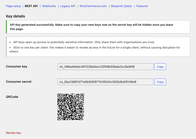 ⚠️ Important: Copy these two codes immediately and save them or send them to us right away. Once you close this page, you cannot see the "Consumer secret" again!