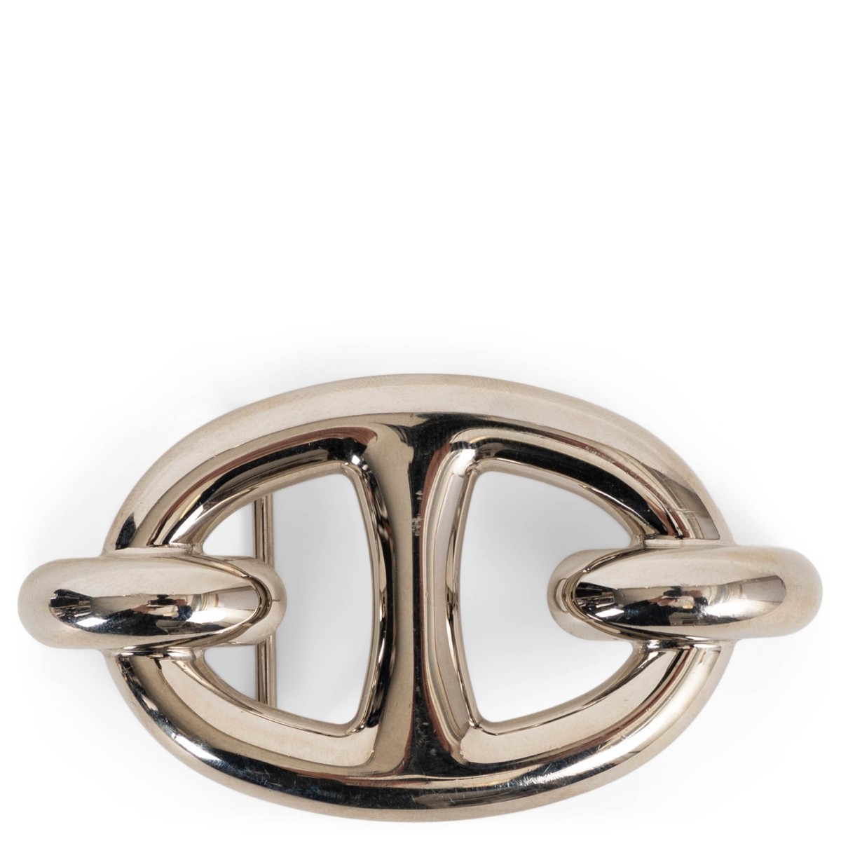 belt buckle is crafted in sleek palladium-plated metal. Inspired by the house’s iconic anchor-link motif designed by Robert Dumas, it brings a refined, nautical touch to any 24mm Hermès belt strap. A timeless and versatile buckle that pairs effortlessly with both casual and formal looks. Has been worn and is in excellent condition. Comes with dust bag.MeasurementsTag Size24mmBuckle Size Height4cm (1.6in)Buckle Size Width8cm (3.1in)HardwarePalladiumShopZurich - RämistrasseAll our listings include only the listed item unless otherwise specified in the description above - Price includes US tariffs - for all other countries price does not include import duties & taxes - check your countries import laws prior purchase------------------------------------------------------------------------------------------------------------------------------------------ Terms & Conditions Luxury-Shops is not affiliated with any of the name-brand items we offer for sale.Warranties and Liabilites: Luxury-Shops declines all responsibility and cannot be held liable for any damages caused by the use of a specific garment.We also cannot be held responsible for the quality of an item (we are not the manufacturer) or any damages resulting from a manufacturing defect.No warranties of any kind are given or implied.Condition of Merchandise: Luxury-Shops offers for sale luxury top-quality products. We fully disclose the condition of each item. In the description of each product, Luxury-Shops will specify the conditions if different from the standards set by the market (Required disclosure of prior use)The main characteristics of products are shown in great detail (through numerous photographs and in-depth descriptions). The products offered for sale MAY NOT correspond to the real garments in terms of image and color because of the Internet Browser or Monitor used (color calibration). Luxury-Shops disclaims all responsibility.Every used item offered by Luxury-Shops has been cleaned and restored to the best possible condition unless noted otherwise. Every used or vintage handbag has been polished and refinished. Your purchases will be sent to you ready to be used or worn.Please be aware that vintage items may be delicate and may not be as resilient as a brand-new item. Please take appropriate care when using a vintage item. Damage to items after receipt or use by customers is not the responsibility of Luxury-Shops.Luxury-Shops is a reseller of authentic designer and vintage merchandise. We are not an authorised dealer and are not affiliated with the brands we sell on our site. Store-new designer items are only available from an authorised dealer or the actual store. Once the item leaves the authorised dealer with a customer, the item is considered pre-owned. However, items can be pre-owned and in new condition - that is, never used by the owner. Below are the definitions of the descriptions we use.NEW: in new condition, that is, never used. This means the item may have been purchased by us from an authorized dealer or a store. New items may also be pre-owned, that is, purchased by one of our consignors and never used. These items may have minor signs of handling as would any item available at an authorized dealer or boutique given that customers would reasonably handle an item when trying it on or examining it for purchase.USED: the item has been carried or worn and may be in any of the conditions described below.PRISTIN…