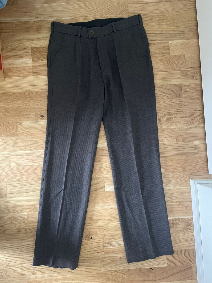 These Apropos pants combine Swiss craftsmanship with sustainable style. Made from 96% wool and 4% polyester, they offer warmth and durability for everyday wear. The classic gray color and tailored fit make them versatile for office or casual outings. As a second-hand item, they support circular fashion, reducing waste and extending the garment's life.