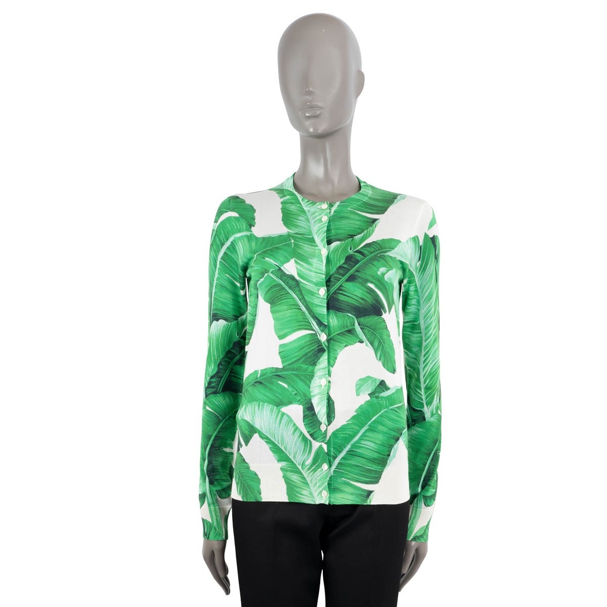This authentic second-hand cardigan from 2016 features a unique banana leaf pattern, crafted from silk for a soft and luxurious feel. Its timeless design makes it a versatile piece for adding elegance to casual or smart-casual outfits. As a pre-owned item, it supports sustainable fashion by extending the life of high-quality garments.