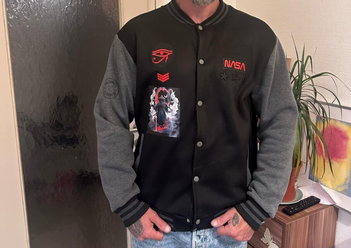 This Collage Jacket in grey offers a unique design by CALABRETTI, perfect for adding a creative touch to your wardrobe. As a second-hand item, it supports sustainability by extending the life of clothing. Ideal for casual outings or artistic events, it pairs well with jeans and simple tops for a balanced look.