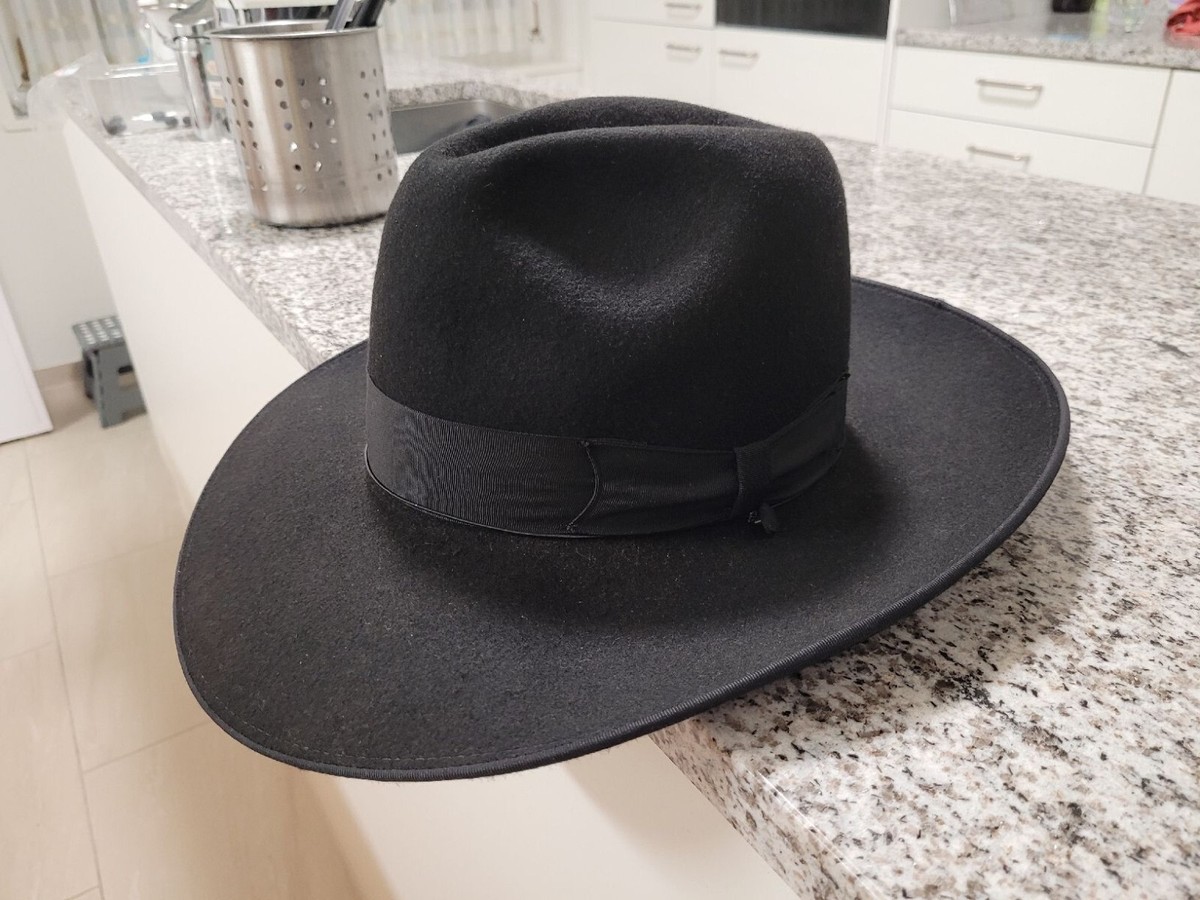 This classic fedora hat adds timeless style to any outfit. Made from durable materials, it features a pinched crown and a medium brim for a versatile look. Perfect for sunny days or smart-casual events, it pairs well with coats and dresses. As a second-hand item, it supports sustainability by reducing waste.