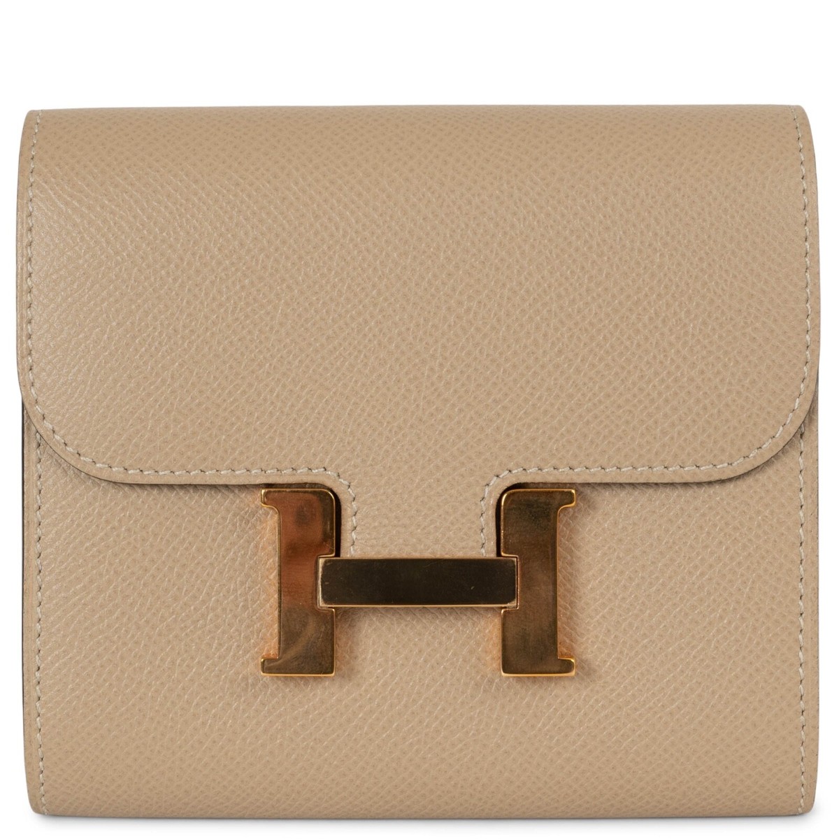 This authentic Hermes Constance short wallet in beige Epsom leather offers timeless elegance and practicality. Crafted from durable Epsom calfskin, it features a compact design with multiple card slots and a secure closure, ideal for daily use or special occasions. As a second-hand item, it supports sustainability by extending the life of a luxury product. Pair it with casual or formal outfits for a sophisticated touch.