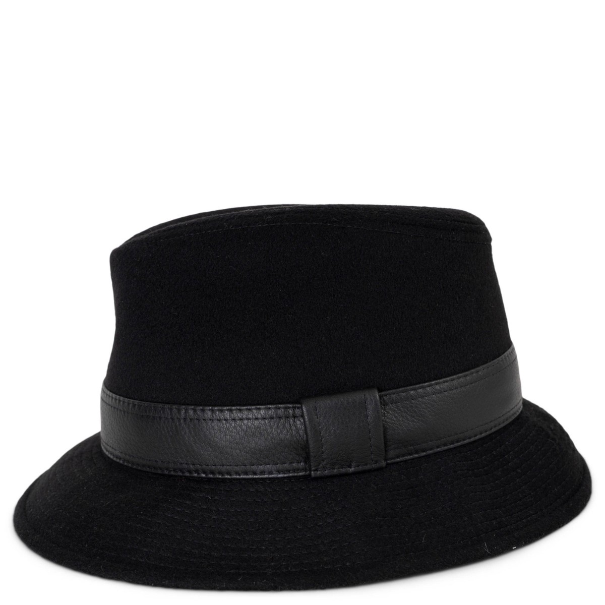 Hermès Funky Fedora Hat Black Cashmere Leather Trim 58
