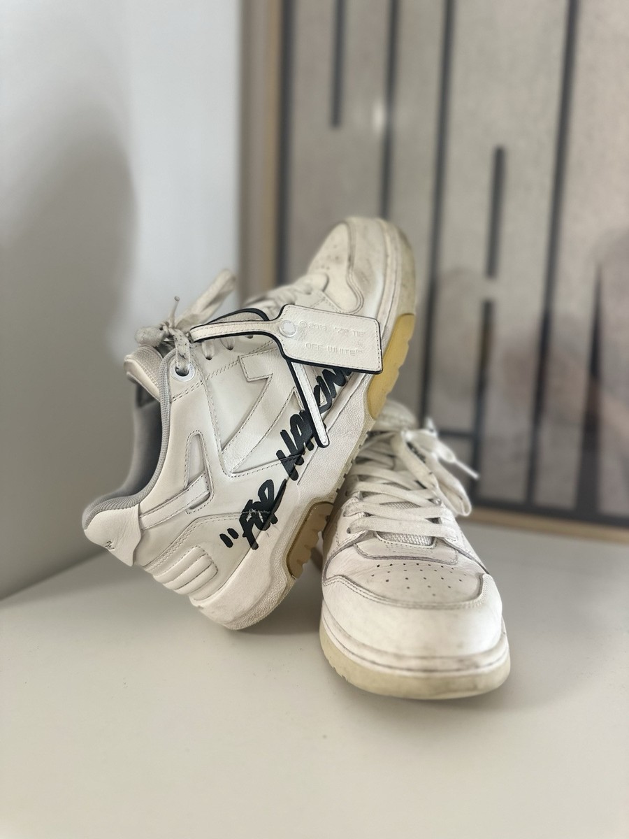 Step into comfort and style with these "Out Of Office" sneakers in a versatile off-white shade. Perfect for casual outings or relaxed work environments, they offer a clean, minimalist look. Crafted for durability, these second-hand shoes are a sustainable choice, giving pre-loved fashion a new life. Pair them with jeans or casual dresses for an effortless, everyday outfit.