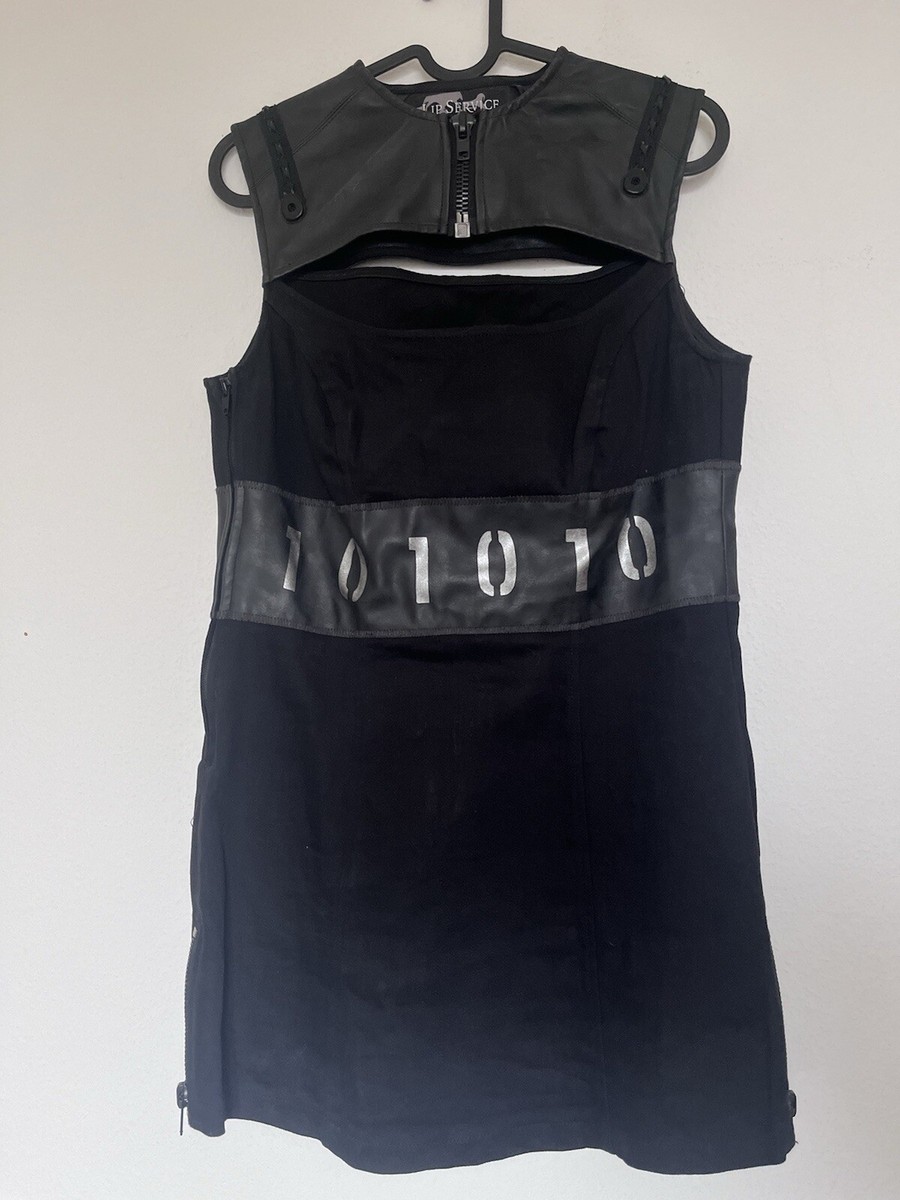 This rare Lip Service Ragdoll mini dress offers a unique, edgy look perfect for alternative fashion enthusiasts. Crafted for a versatile fit, it's labeled Large but fits like a Medium, making it ideal for layering or standalone wear at concerts or night outs. In good pre-owned condition with no flaws, it's a sustainable choice that reduces waste. Pair with boots and a leather jacket for a bold statement.