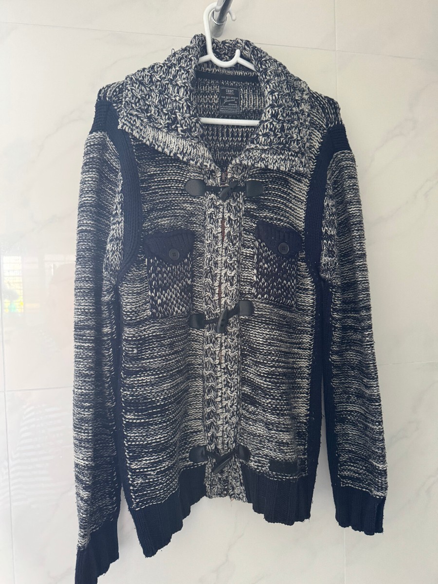Stay cozy and stylish with this warm TRBC jeans cardigan, perfect for layering on chilly days. Made from a blend of materials for durability and comfort, it features a classic knit design that pairs well with casual outfits. As a second-hand item in excellent condition, it supports sustainable fashion by extending the life of clothing. Style it with jeans and a t-shirt for a relaxed look or over a dress for added warmth.