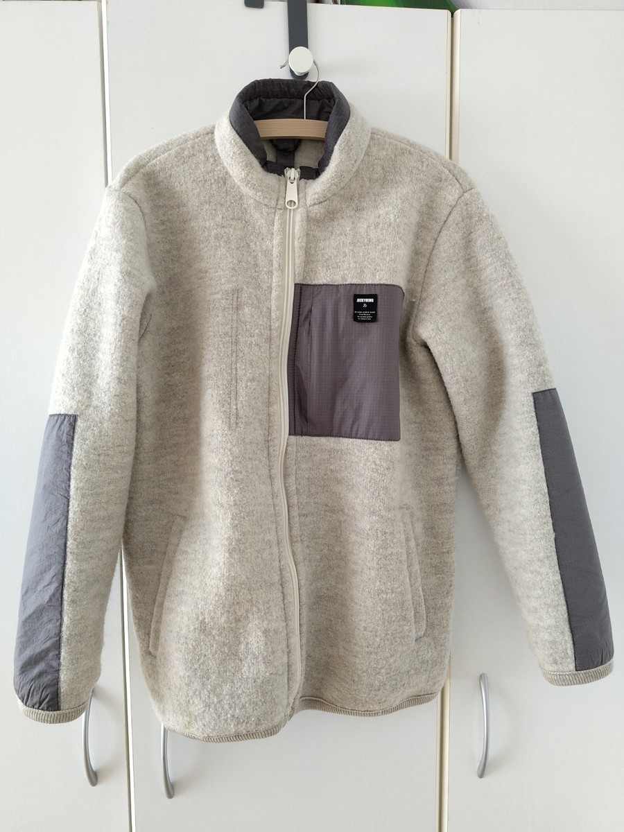 Stay cozy and stylish with this unisex wool fleece jacket from JeckyBeng. It's second-hand, giving it a unique character and reducing waste. The soft wool fleece material offers excellent warmth and breathability, perfect for casual outings or layering in cooler weather. Wear it with jeans for a relaxed look or over a shirt for added comfort.