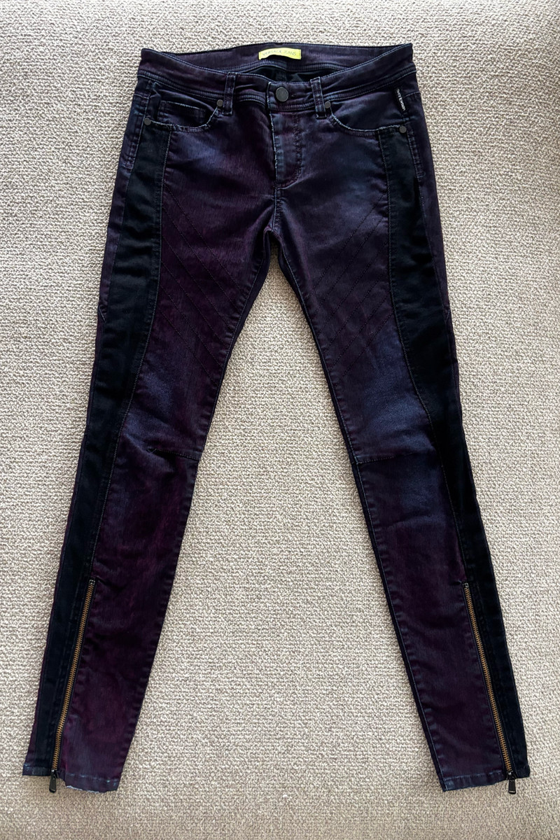 Ces jeans skinny de Versace Jeans Couture se distinguent par leur couleur violette vibrante et une fermeture éclair pratique à la cheville pour un enfilage facile. Conçus pour une silhouette élancée et ajustée, ils sont parfaits pour ajouter une touche audacieuse aux tenues décontractées ou de soirée. En tant qu'article d'occasion, ils favorisent la mode durable en prolongeant la vie de vêtements de qualité.