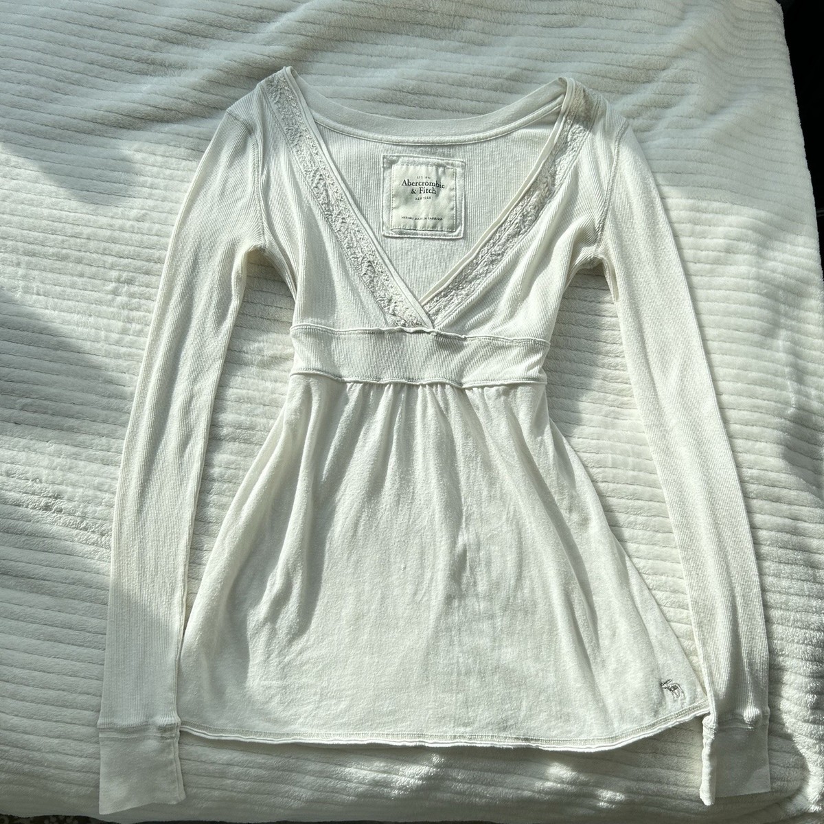 Ce haut vintage Abercrombie & Fitch rappelle le style du début des années 2000 avec sa silhouette ballerine babydoll. En tissu extensible pour un confort optimal, il est parfait pour les jours décontractés ou le layering.