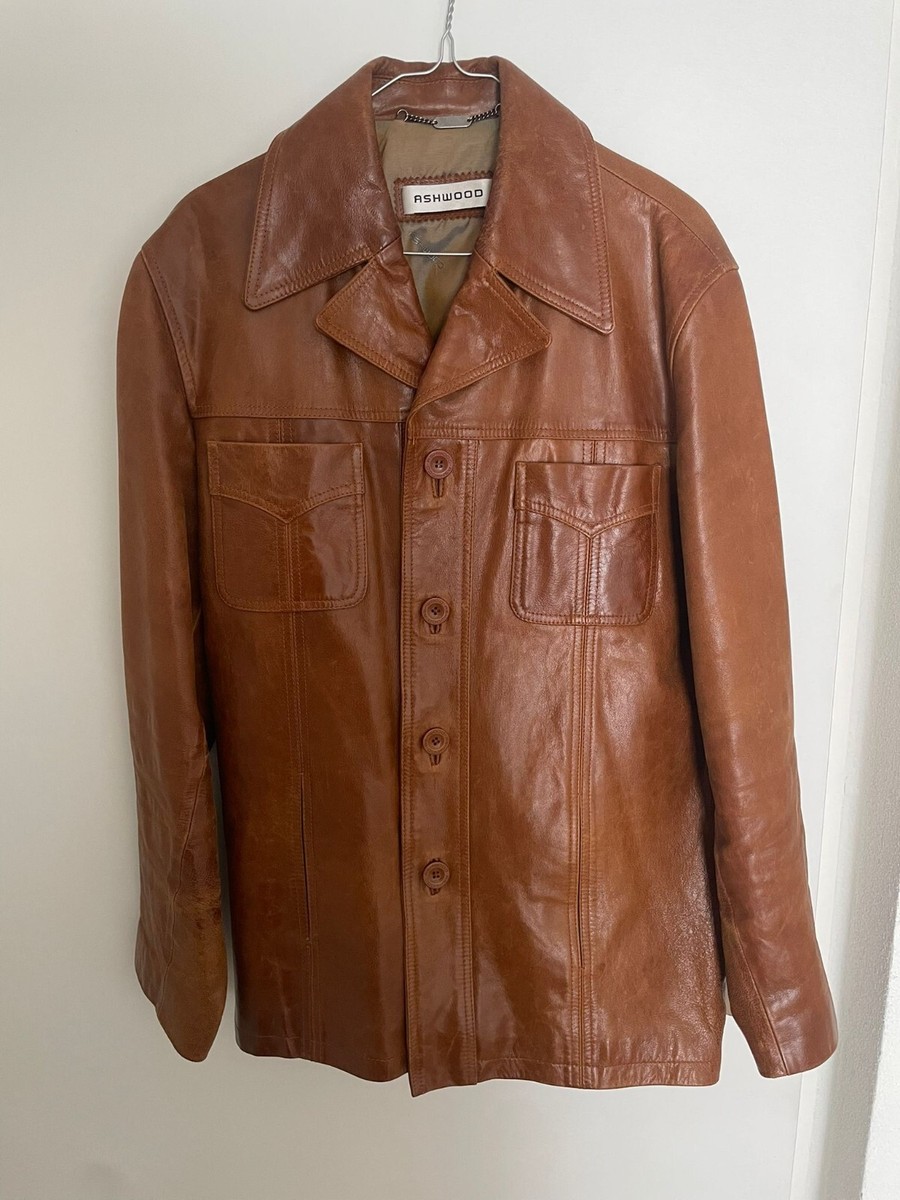 Questa giacca in pelle genuina offre un look vintage senza tempo con una vestibilità comoda. Realizzata in pelle resistente, presenta un design classico che si abbina bene con jeans o pantaloni casual per l'uso quotidiano. Come articolo di seconda mano in buone condizioni, promuove la sostenibilità prolungando la vita di capi di qualità. Perfetta per uno stile robusto e retrò in uscite o occasioni informali.
