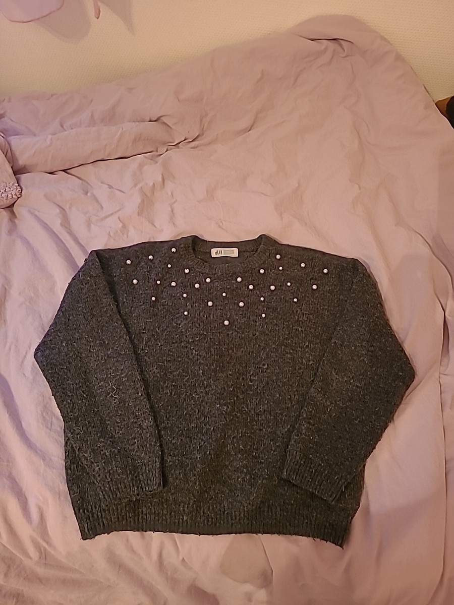 Questo pullover H&M di seconda mano offre una vestibilità comoda e casual, perfetta per l'uso quotidiano. Come articolo usato, sostiene la sostenibilità prolungando la vita dei vestiti e riducendo gli sprechi. Ideale per stratificare con tempo fresco o da abbinare ai jeans per un look rilassato.
