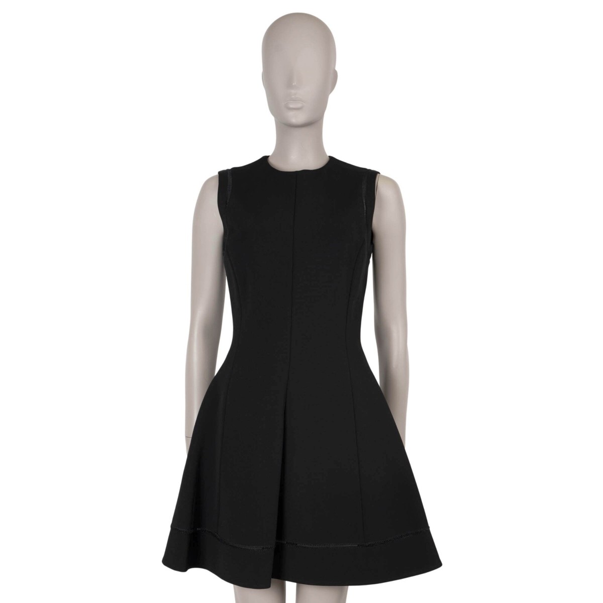 Dieses authentische Victoria Beckham Minikleid vereint Stil und Komfort mit seiner ärmellosen, ausgestellten Silhouette. Hergestellt aus einer schwereren Jersey-Mischung aus 86 % Viskose, 10 % Polyester und 4 % Elasthan, bietet es ein weiches, dehnbares Gefühl und eine schmeichelhafte Passform. Merkmale sind ein Rundhalsausschnitt, einzigartige abgesetzte Säume mit dezenter Stichverzierung und ein verdeckter Reißverschluss hinten für einfaches Anziehen. Vollständig mit luxuriöser Seide gefüttert für zusätzliche Eleganz, ideal für Abendveranstaltungen oder besondere Anlässe. Pflegen Sie es schonend, um Form und Qualität zu erhalten.