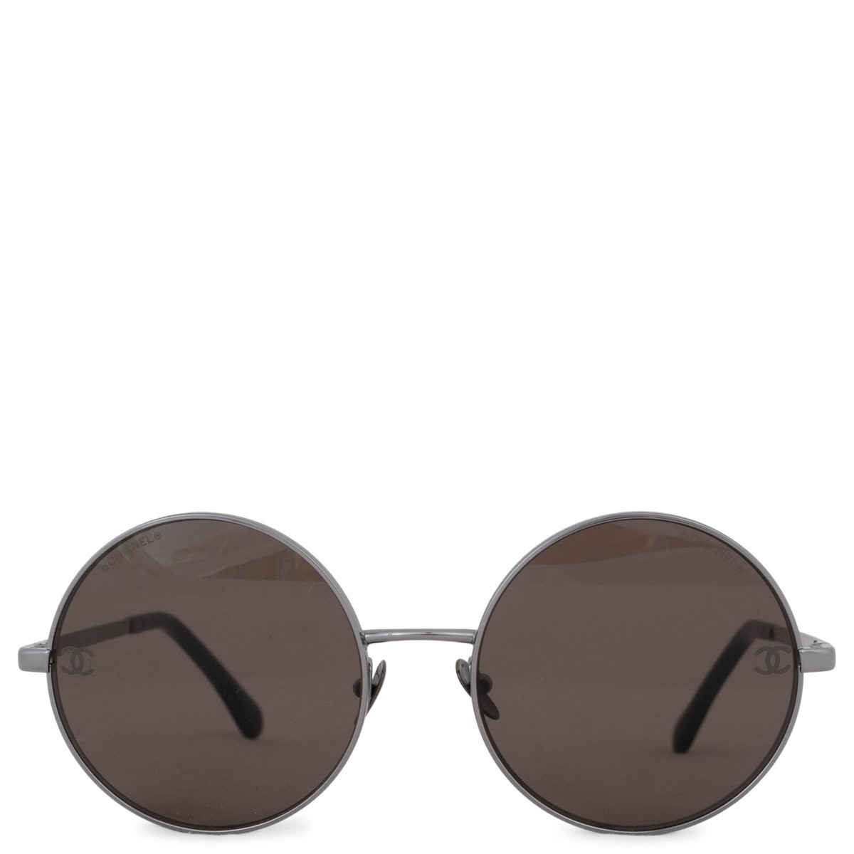 Verleihen Sie Ihrem Look mit dieser authentischen Chanel-Sonnenbrille einen zeitlosen Akzent. Der runde Metallrahmen bietet UV-Schutz und einen bequemen Sitz. Als Second-Hand-Produkt ist sie eine nachhaltige Wahl, die Abfall reduziert und Ihrem Stil Luxus verleiht. Ideal für lässige Ausflüge oder besondere Anlässe, um jedes Outfit perfekt zu ergänzen.
