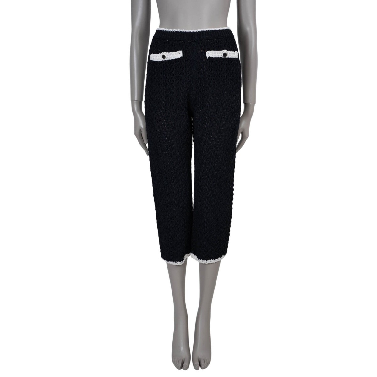 Bereichern Sie Ihren Kleiderschrank mit dieser authentischen Chanel-Gehäkel-Crophose aus der 22C Dubai-Kollektion. Hergestellt aus einer Mischung aus Seide und Baumwolle bietet sie ein luxuriöses Gefühl und atmungsaktiven Komfort. Die Häkel-Details verleihen ein einzigartiges, strukturiertes Aussehen, ideal für einen auffälligen Auftritt. Kombinieren Sie sie mit einem schlichten Oberteil und High Heels für einen schicken Abendlook oder leger mit Sandalen für einen entspannten Tag. Als Second-Hand-Artikel unterstützt sie nachhaltige Mode, indem sie geliebten Stücken neues Leben schenkt.