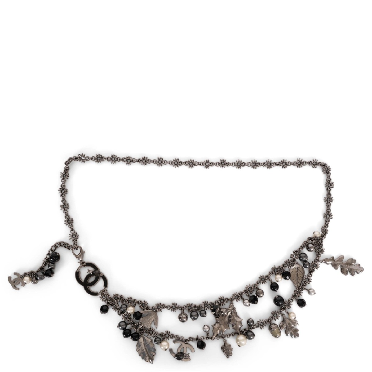 Dieser authentische Chanel-Kettengürtel aus der 05A AUTUM CHARMS Kollektion besticht durch sein schlankes Silberdesign und verleiht jedem Outfit einen Hauch von Luxus. Hergestellt aus hochwertigen Materialien, hat er eine Länge von 85-90 cm für einen vielseitigen Sitz. Als Second-Hand-Artikel unterstützt er nachhaltige Mode, indem er geliebten Stücken neues Leben schenkt. Kombinieren Sie ihn mit Kleidern oder hoch taillierten Hosen für einen eleganten, schicken Look.
