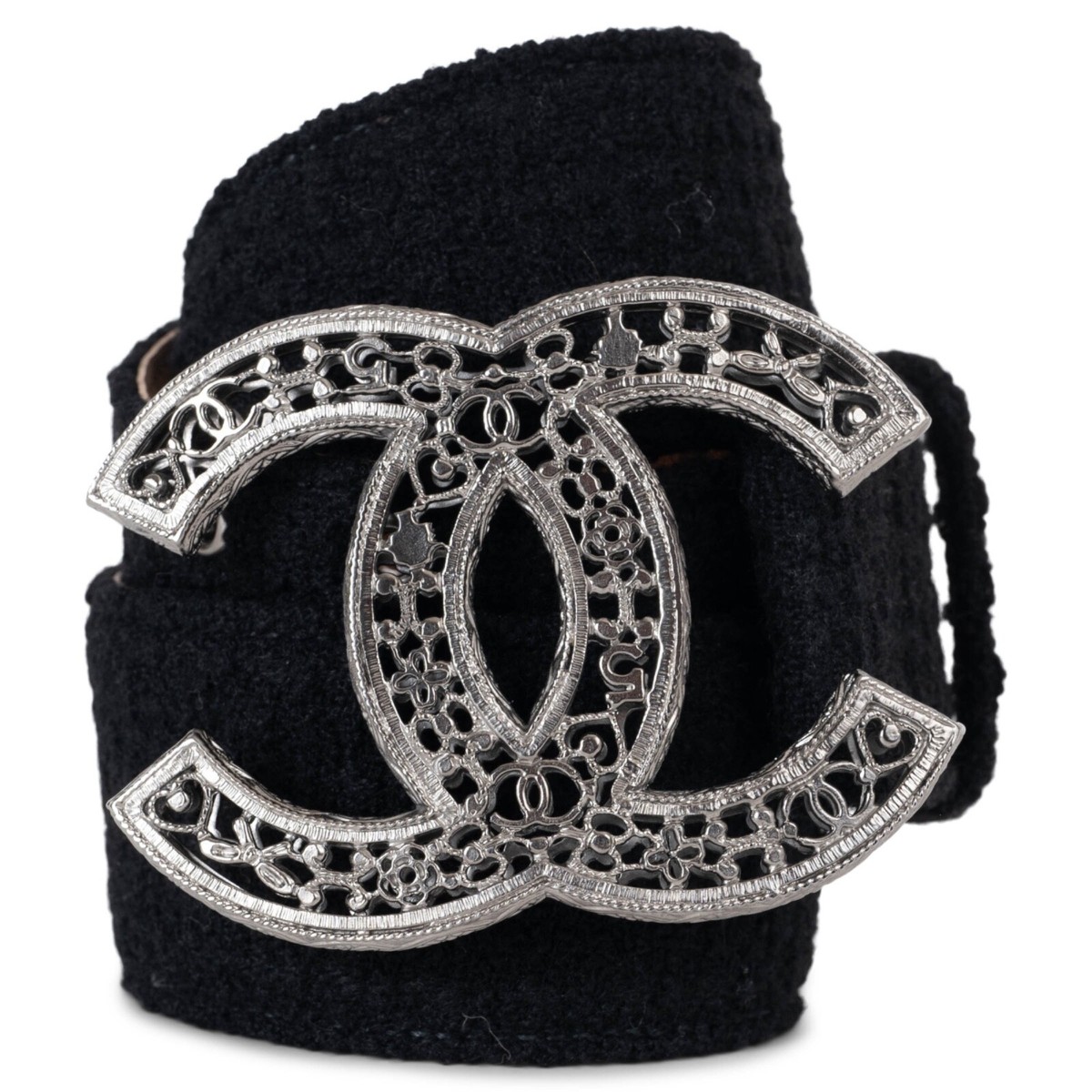 Dieser authentische CHANEL Taillengürtel aus der 08A LONDON Kollektion besticht durch sein zeitloses schwarzes Tweed-Design und eine filigrane CC-Schnalle. Er betont die Taille elegant und eignet sich perfekt zu Kleidern, Mänteln oder hoch sitzenden Hosen für einen raffinierten Look. Als Second-Hand-Stück fördert er nachhaltige Mode, indem ein Luxusartikel neu genutzt wird.