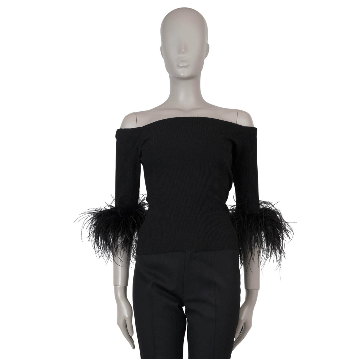 Dieses authentische Saint Laurent Off-Shoulder-Shirt aus dem Jahr 2020 besticht mit elegantem Federbesatz für einen Hauch von Luxus. Hergestellt aus hochwertigen Materialien, bietet es eine schicke, second-hand Option für nachhaltige Modebegeisterte. Tragen Sie es zu Abendveranstaltungen oder besonderen Anlässen, um Ihren Stil mit zeitlosem Charme zu unterstreichen.