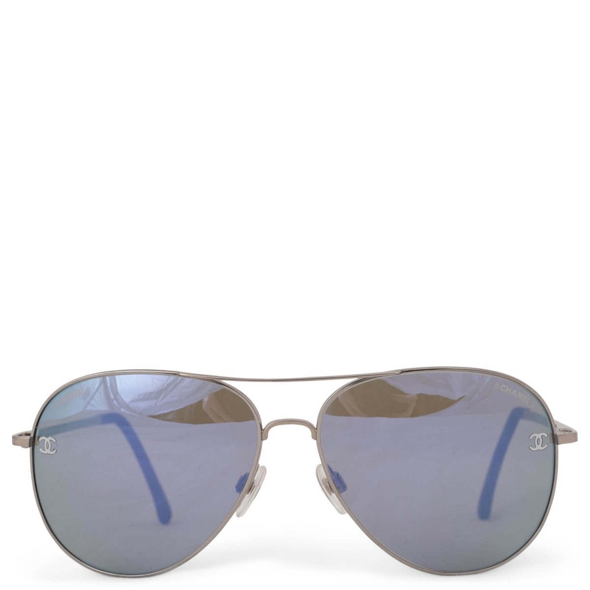 Verleihen Sie Ihrem Look mit dieser authentischen Chanel Pilot Aviator Sonnenbrille in einem markanten Lilaton einen besonderen Schliff. Das Modell 4189-T-C besticht durch die klassische Aviator-Form und das ikonische Chanel-Branding für zeitlose Eleganz und UV-Schutz. Hergestellt für Langlebigkeit, perfekt für sonnige Tage und verleiht lässigen oder schicken Outfits einen luxuriösen Akzent.