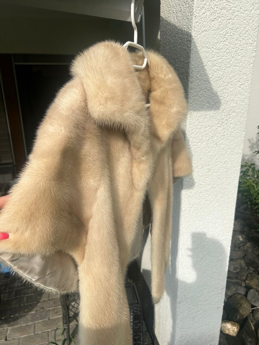 Genießen Sie zeitlose Eleganz mit dieser Second-Hand-Nerz-Pelz-Umhängejacke. Hergestellt aus echtem Nerzpelz, bietet sie luxuriöse Wärme und ein weiches, flauschiges Gefühl. Perfekt für besondere Anlässe oder um Ihrem Winteroutfit einen raffinierten Touch zu verleihen, liegt dieses Einheitsgrößen-Stück schön über den Schultern.