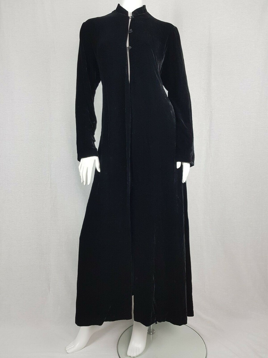 Dieser beeindruckende Abendmantel aus der Couture-Kollektion von Jasper Conran ist aus luxuriösem Seidensamt gefertigt und mit reiner Seide gefüttert für ein weiches, elegantes Tragegefühl. Er verfügt über aufwendig bestickte Verschlüsse vorne und passende Details an den langen Ärmeln, alles handgefertigt in höchster Qualität. Der Mantel fließt bei jeder Bewegung schön und ist ideal für formelle Anlässe oder besondere Ereignisse. Nur chemisch reinigen, um die empfindlichen Materialien zu schützen.