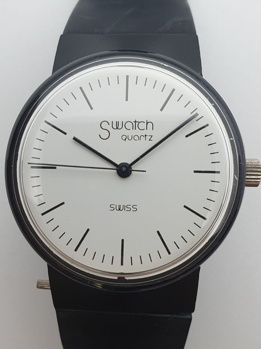 Dieser seltene Swatch 1981 Zaugg-Prototyp, ehemals im Besitz von Direktor Anton Bally, ist ein funktionierendes Stück Uhrengeschichte. Mit dem markanten Big S-Design zeigt er Schweizer Handwerkskunst und wird als Gebrauchtware verkauft. Perfekt für Sammler und Enthusiasten, verleiht er jedem Vintage-Look eine besondere Note.