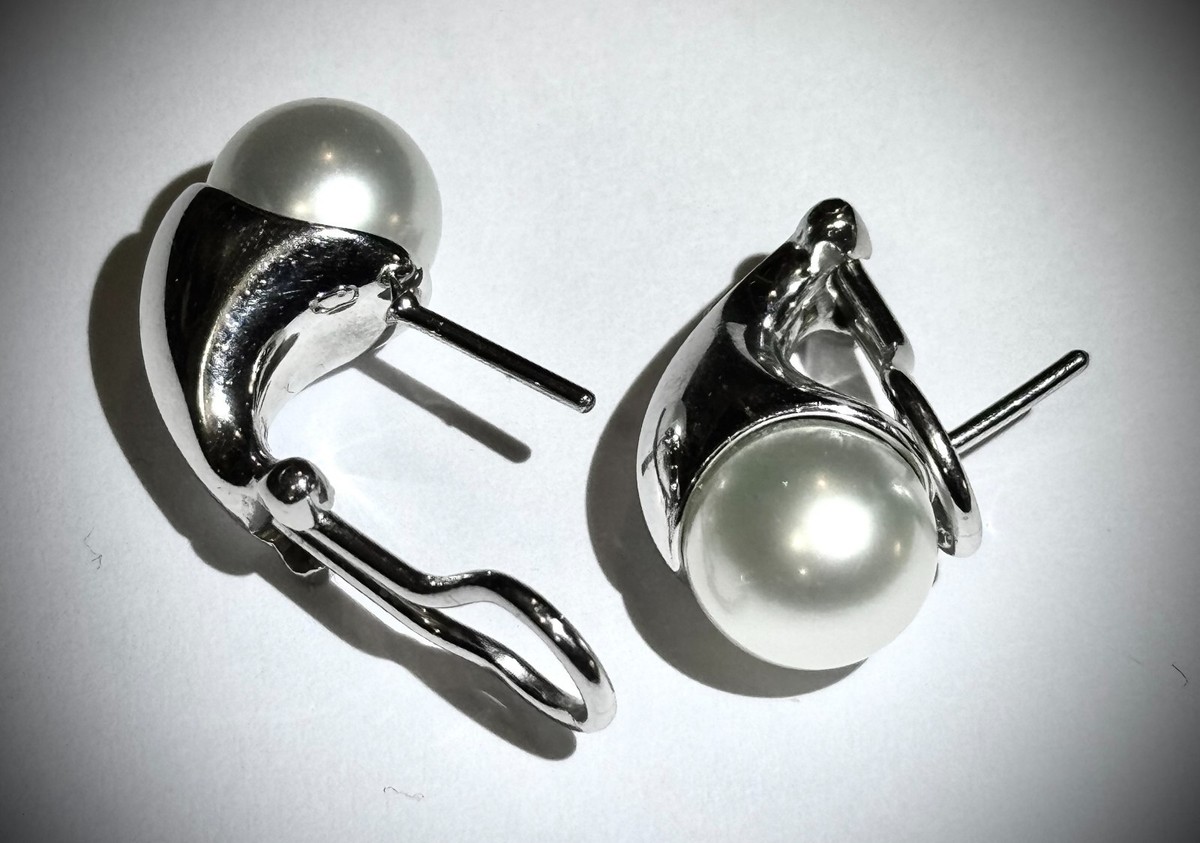 Weissgold Ohrstecker mit Südseeperlen. 2 Ohrstecker aus 750 Weissgold mit Steck- und Clipsystem2 Südseeperlen weiss, Durchmesser 10.0 - 11.0 mmGesamtgewicht 13.27 g (=> Goldankaufswert per 14.10.25: ca. CHF 1400.-)Beachten Sie auch die dazu passenden Ohrringe unter https://www.