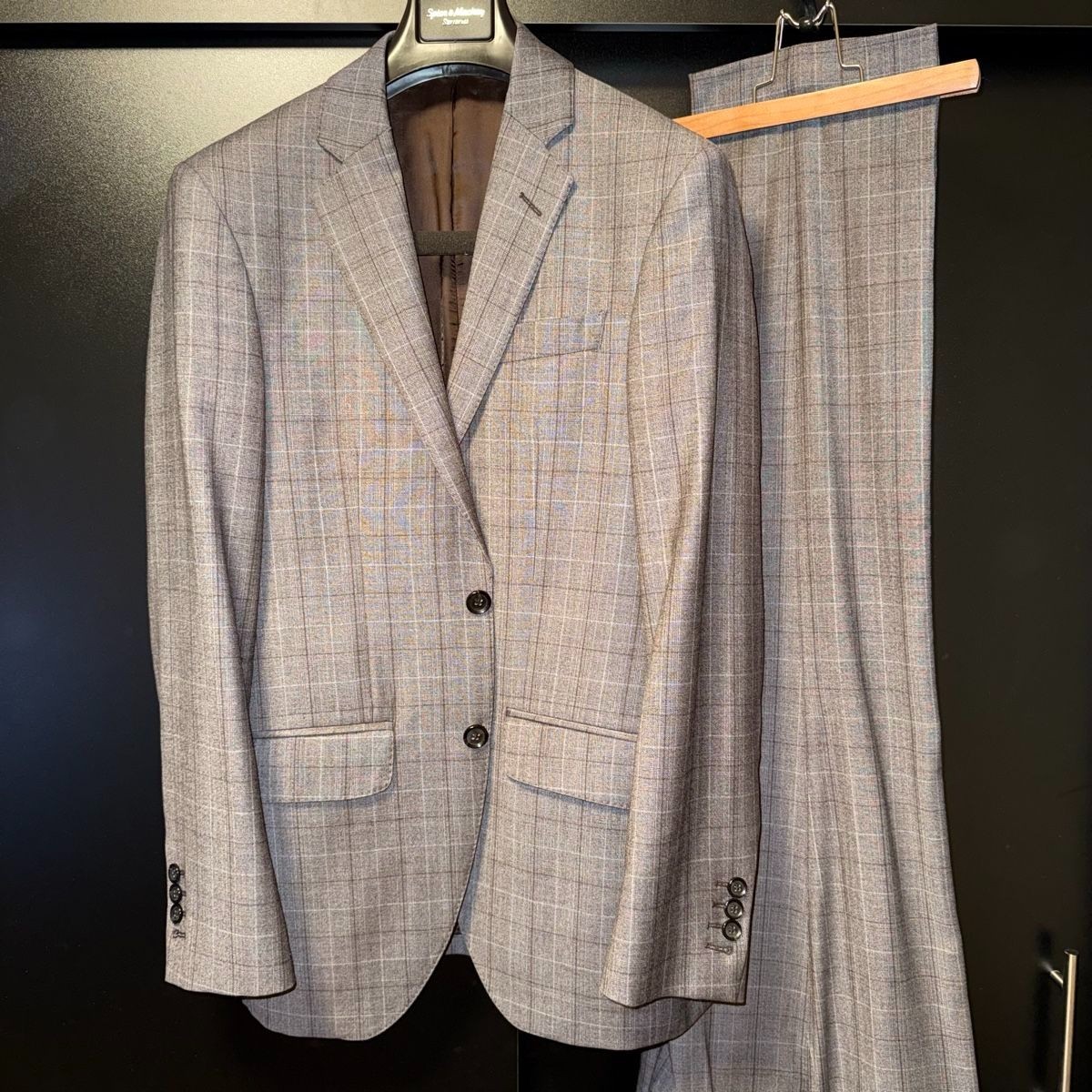 Hackett suit 36R W30 Size S Loro Piana wool gray taupe brown checkered plaid