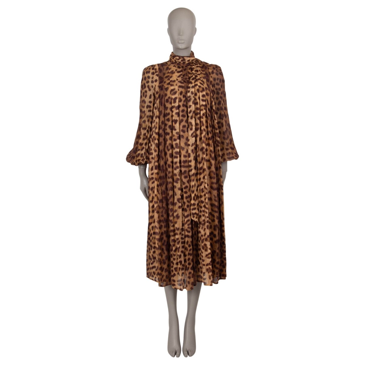 brown leopard-printed viscose embodies effortless elegance. Designed with a flowy A-line silhouette and midi length, it features a high neck with a removable neck tie and 3/4 blouson sleeves. It opens with a concealed zipper in the back and comes complete with a matching slip dress in a polyester (86%) and elastane (14%) blend—perfect for adding a touch of wild sophistication to any wardrobe. Has been worn and is in virtually new condition. Please note: Bust, waist and hips measurements are taken from the slip dress underneath. 2025 Resort l CrushMeasurementsModel2331DR251Tag Size0SizeXSShoulder Width40cm (15.6in)Bust74cm (28.9in) to 84cm (32.8in)Waist80cm (31.2in) to 90cm (35.1in)Hips98cm (38.2in) to 108cm (42.1in)Length120cm (46.8in)Side Seam Length98cm (38.2in)Sleeve Length62cm (24.2in)All our listings