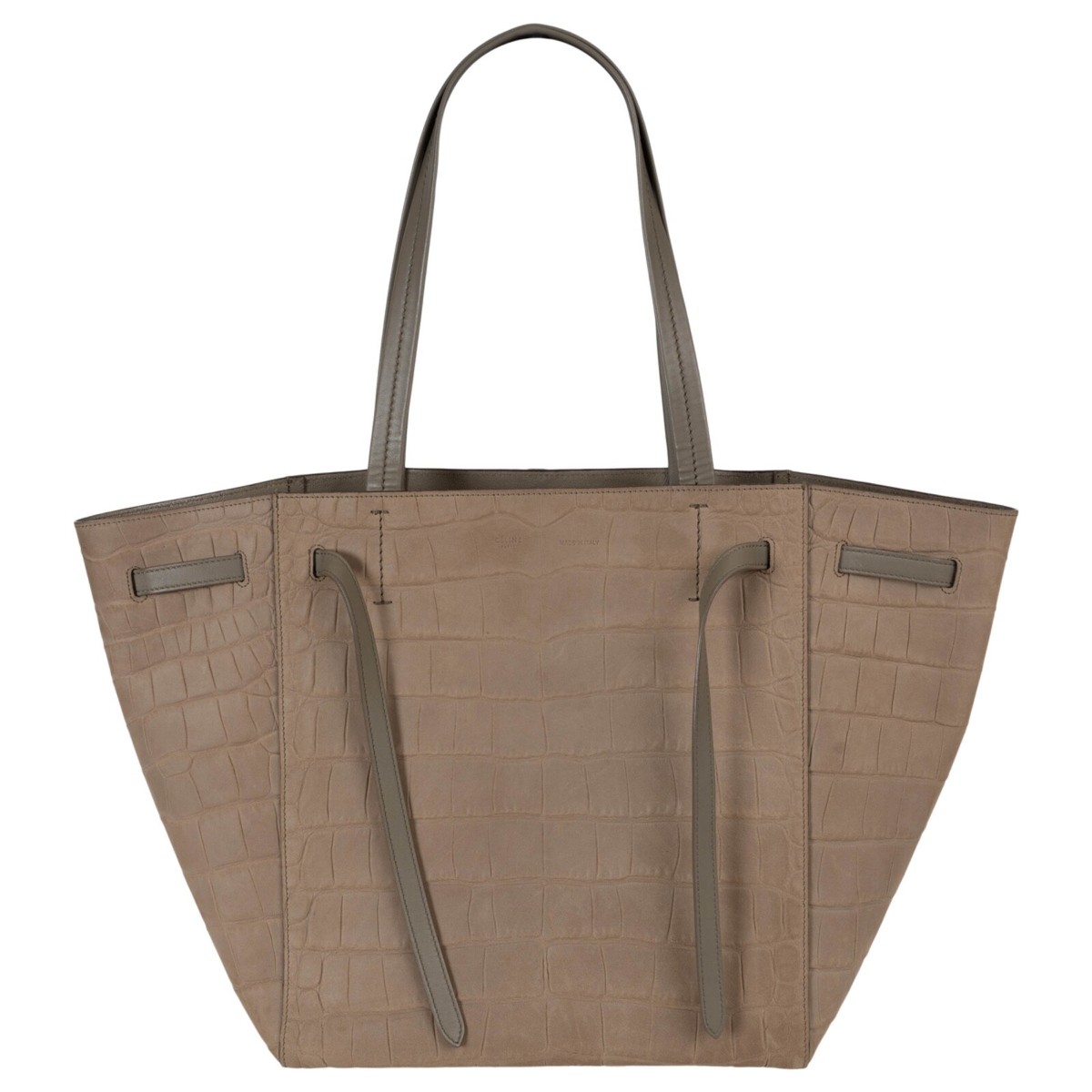 Celine Cabas Phantom Small tote in beige taupe crocodile-embossed nubuck leather is the perfect everyday bag. Designed with belt straps and handles in smooth leather, it offers a sleek yet practical silhouette. The open top provides easy access, while the leather-lined interior features a hanging zip pocket and additional open pockets against the back for effortless organization. A timeless and versatile piece for daily wear. Has been carried with minimal signs of use overall in excellent condition. 2016 ResortMeasurementsHeight30cm (11.7in)Width26.5cm (10.3in)Depth17cm (6.6in)Drop of the Handle22cm (8.6in)HardwareGold-ToneAll our listings