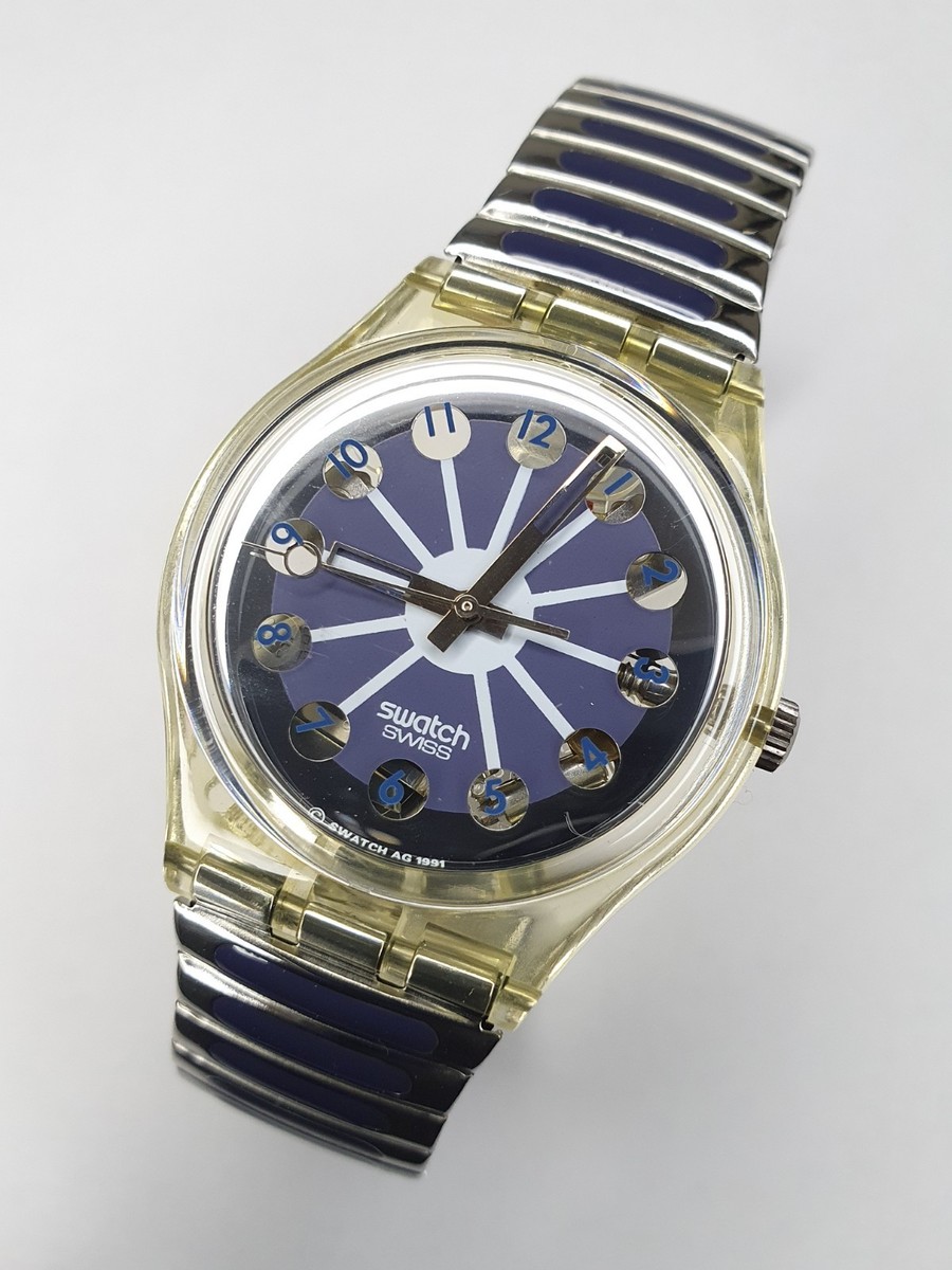 Questo orologio Swatch Blue Segment GK148 di seconda mano combina un design giocoso con una funzionalità affidabile. La cassa da 34mm ospita un movimento al quarzo che mantiene l'ora precisa, mentre il quadrante blu segmentato aggiunge un tocco di colore al polso.
